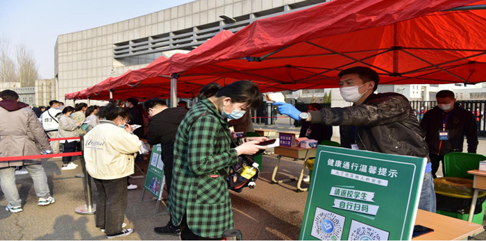 考试当天,考生们自觉佩戴口罩、有序排队,主动配合工作人员进行体温检测、身份核验,在工作人员的引导下有序进入考场。